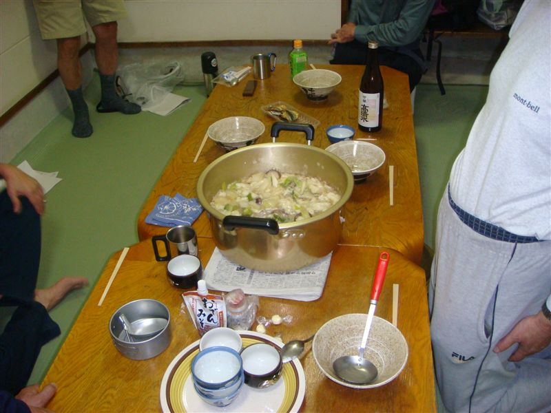 しかしこの温泉は傷にもいいらしく温泉から出たら出血も止まりすぐに良くなった。とてもいい温泉だ。後発隊5名が到着していて温泉にゆっくり入った後、盛岡で買出しした食材で大鍋を作り宴会を開始して明日の予定を練った。