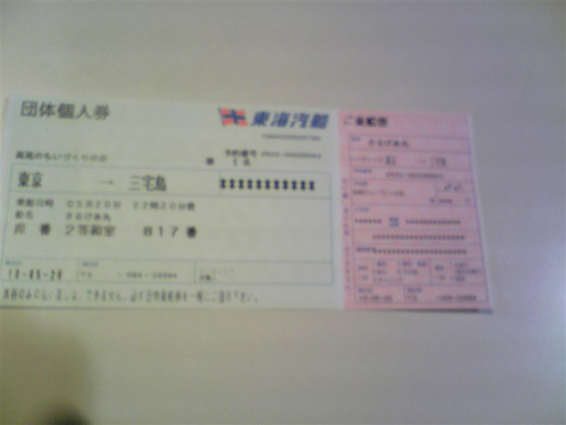 昨晩、帰ってきました。写真が間に合いませんが速報です。明日から詳細レポートを書いていきますのでお待ちください。 今日は還暦を期に始めたブログが4年目に入ります。三宅島ではカメラの電池を忘れてしまい専用電池なの使えませんでした。携帯電話のカメラで撮ったのをPCに移すのが間に合いませんので明日から写真をUpしていきます。14、15日は天気がよく順調に作業が出来ました。昨日は雨でしたが島内一周の観光でした。行きの船も帰りの船の中では乗船してから下船まで宴会続きでとても楽しいボランティアの旅でした。では明日からの詳細レポートをお待ちください。