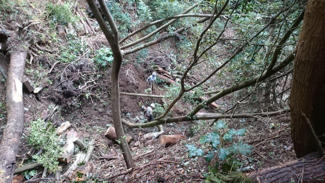 私の班は龍前崎から遊歩道を入った500m位の間の倒れた機や遊歩道に倒れて来そうな枯松の伐倒です。