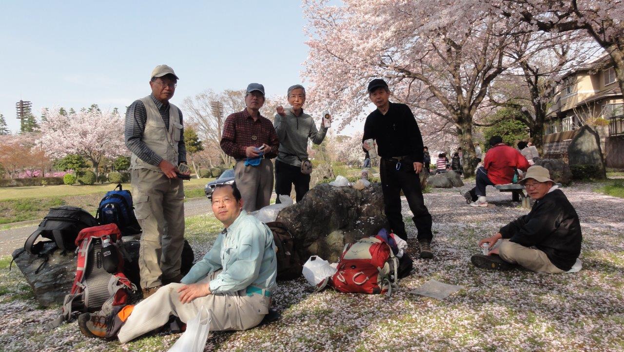 早めに作業が終わったので帰途に着きましたが桜が満開なので淺川の綾南公園で花見をして帰ることにしました。コンビ二でビールとおつまみを買って花見です。これではお酒が足りずに高尾駅のいつもの食堂でまたまた宴会をしてしまいました。明日の朝は早いというのにね。会の代表も合流してちょっと飲みすぎでした。