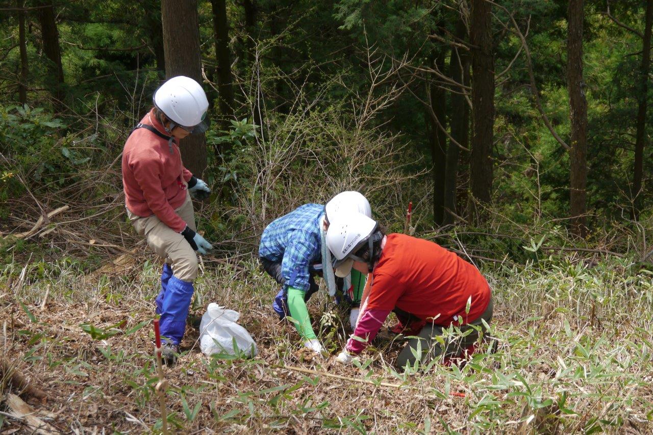 先週の4月13日に行った裏高尾での植樹祭(その様子はこちら)の1週間後4月19日に植えた木の点検(根が出てないか、倒れていないかなど)や後片付けにいってきた。前日の雨で苗木にはとても良い恵みの雨だった。