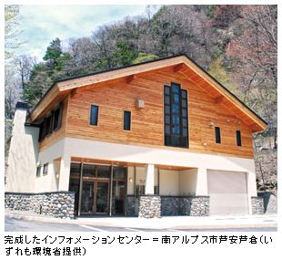 6月15日に南アルプスの登山口・広河原に環境省が整備を進めていた「野呂川広河原インフォメーションセンター」が完成しオ ープンするそうだ。貴重な動植物や地形などの資料を展示するほか、天候や登山情報をリアルタイムで提供するとのこと。休憩 室やロッカーも完備し、観光、安全面での向上を図り、施設は長野県側の林道開通に合わせてにオープンするのだそうだ。 鉄骨2階建てで、延べ床面積585平方メートル。アルペンプラザ広河原跡地に建設し、南アルプスの自然解説や登山情報の提 供、自然保護の普及啓発を図っていくという。臨時派出所やバス営業所の機能も併せ持ち、南アルプス市が管理し、案内スタッ フが常駐するので便利ですね。