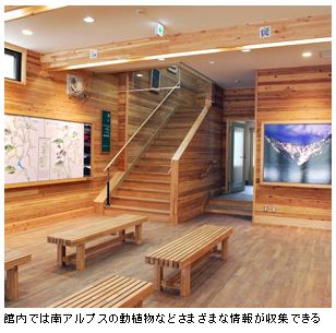 館内では南アルプスの山々や登山ルート、広河原周辺の散策ポイントを紹介し、キタダケソウや ライチョウといった貴重な動植物についても解説する。また、登山者の安全を確保するために山小屋や天候などの情報を随時更 新するほか、下山者からの情報も提供するので安心ですね。センターは毎年登山シーズンを迎える6月から11月上旬までで、期 間中は無休でバスの始発から最終便の時間帯に開館するので登山者には嬉しいですね。。6月26日には山梨県側の開山祭に合わ せて同所でオープニングセレモニーを行うそうなので行ってみたらどうでしょう。