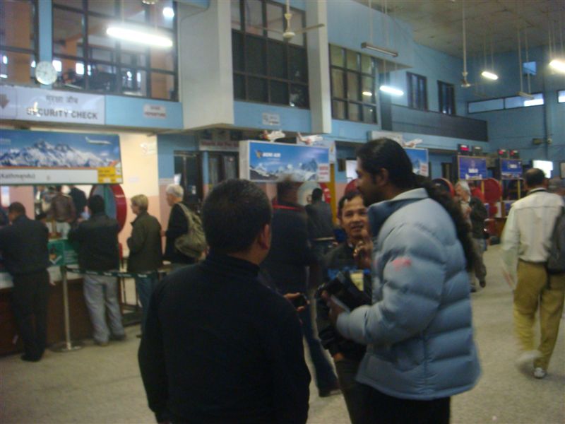 トレッキングを終わった私は昨晩サイド カトマンズで合流し、8日目の11月17日の早朝マウンテンフライトのためカトマンズ空港へと出かけました。フライ トで着るとのことでチェックインを済ませたが待てど暮らせどマウンテンフライトの初便が飛んだとの情報がありい けるかと思っていたが3時間あまり待たされた挙句本日のマウンテンフライトは全便欠航とのアナウンス・・・・こ こでも国内便にはだまされました。明日が予備日になっているのですが、旅行者に確認を入れたら毎日欠航が続いて いるので予約できないとのつれない返事!マウンテンフライトはあきらめることにしました。