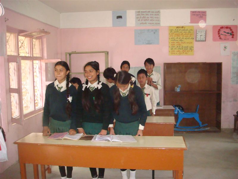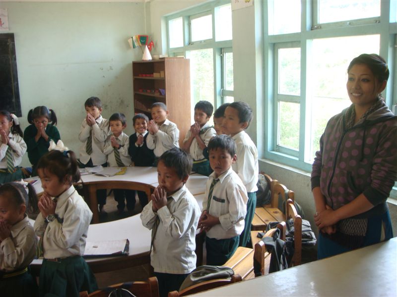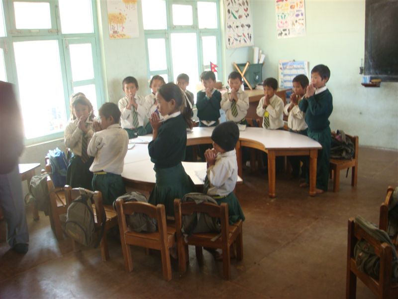 小学校1年生に相当するクラスです。ナマステ(こんにちは)と手を合わせて迎えてくれます。礼儀正しいですよ。