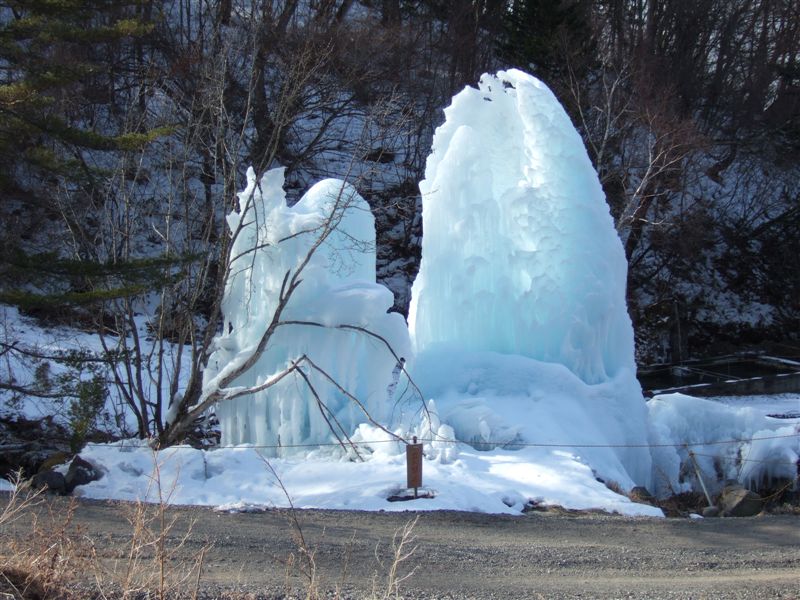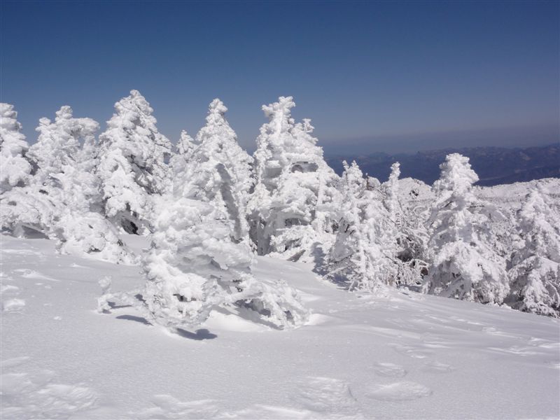 蓼科山も目の前で、木の枝のえびの尻尾を入れて写真を撮ってみました。八ヶ岳は風が強いのが分かりますね。ここでクイズです。えびの尻尾が出来るときの風の方向は?子の写真で右?左?回答は最後にあります。