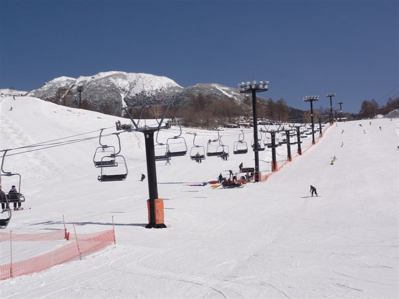 ゲレンデのほうは風もあまりなく暖かです。蓼科山も見えています。