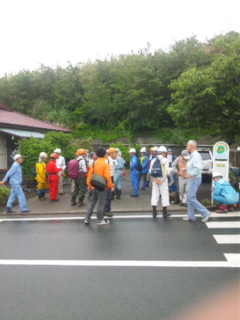 わたしはの作業班はC班で今回は巨木めぐりハイキング道路の整備を行う作業になった。ミィーティングの後、バスで坪田地区へと向かった。