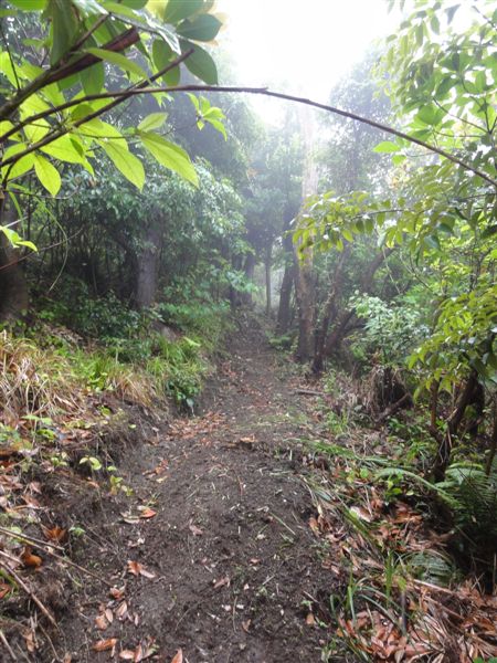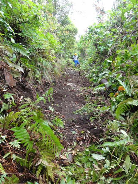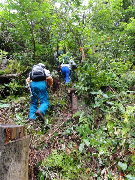 急坂を登っていきます。雨は幸い小降りで降ったりやんだりで今日の作業には問題なさそうです。