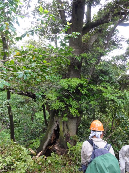 スダジイの巨木もありました。この木は幹周り7mあるそうですが他にももっと大きな木がこのあたりにあり周遊道路で散策できるよう道つくりを行ってきました。