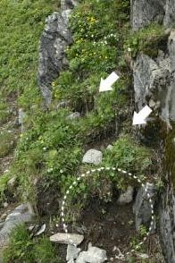 南アルプス・北岳周辺の高山植物の群生地で登山者が希少種のキタダケソウなどを踏み荒らすケースが増加している痕跡が見つけられてい る。登山ブームで登山者が増える中、高山植物の価値が広く知られ、近くで写真を撮ろうと群生地に入り込んでいるとみられるとうだ。北 岳では以前から高山植物の盗掘やニホンジカによる食害が深刻化して山梨県が罰則規定を盛り込んだ条例を制定したり、環境省が防護柵を 設置したりして対応を進めてきたが踏み荒らしには現在有効な手だてがない状況のようだ。被害が増える背景について「近年の登山ブーム で北岳にも登山のベテランだけでなく初心者が増え希少な高山植物を守る意識が一部で低くなっている」と指摘されている。花が咲く箇所 に一歩一歩進むような靴の跡などから、荒らす目的ではなく、写真を撮影するために入り込んでいるとみられるという。「盗掘の場合高山 植物の価値が下がるので踏み込むようなことはしない」そうだ。以前は踏み荒らすケースは現在ほど見られなかったという。今後も続くよ うであれば、ロープやネットの設置も検討していかなければならない」としており高山植物は身近に見られず人間もシカ波の扱いになっち ゃいますね。植生地に入ってる人を見かけたら大声で注意しましょうね。 【写真】高山植物の群生地に残っている踏み跡(円内や矢印)=南アルプス・北岳 参考:山梨日日新聞