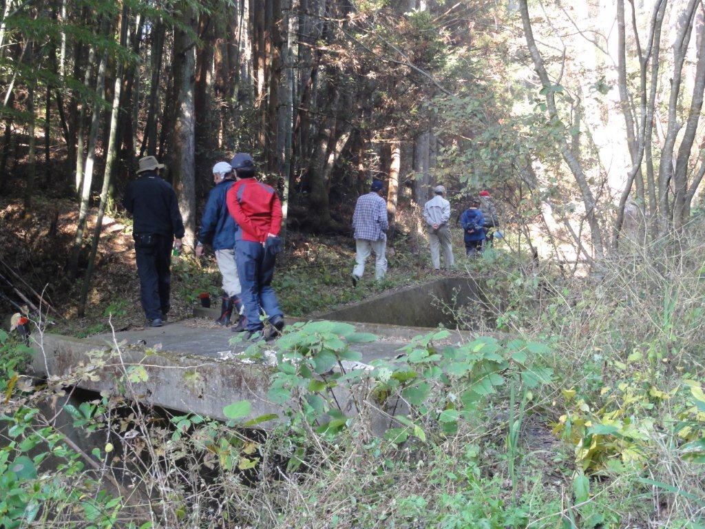 道路は荒れていますが道幅もありしっかりしています。左側は杉の植林で手入れが行き届いています。右側は紅葉樹林帯ですが手入れが行われていないで荒れています。