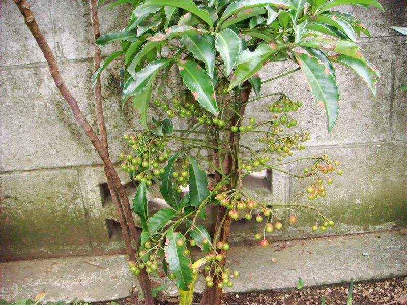 DSC00546.JPG家の庭には小鳥が運んできた種から育った千両と万両の木がある。立冬を過ぎて千両は真っ赤に色づいた。昨年はお正月に飾ろうとしたら、実が熟したと思ったら鳥にほとんど食べられてしまい生け花に利用できなかった。今年はそろそろ袋でもかぶせて食べられないようにしておかないといけないだろう。でも元々小鳥が運んで来てくれたので生け花に利用する分だけを防御してあとは小鳥に還元しなくてはいけないだろう。そして万両の方は・・・・