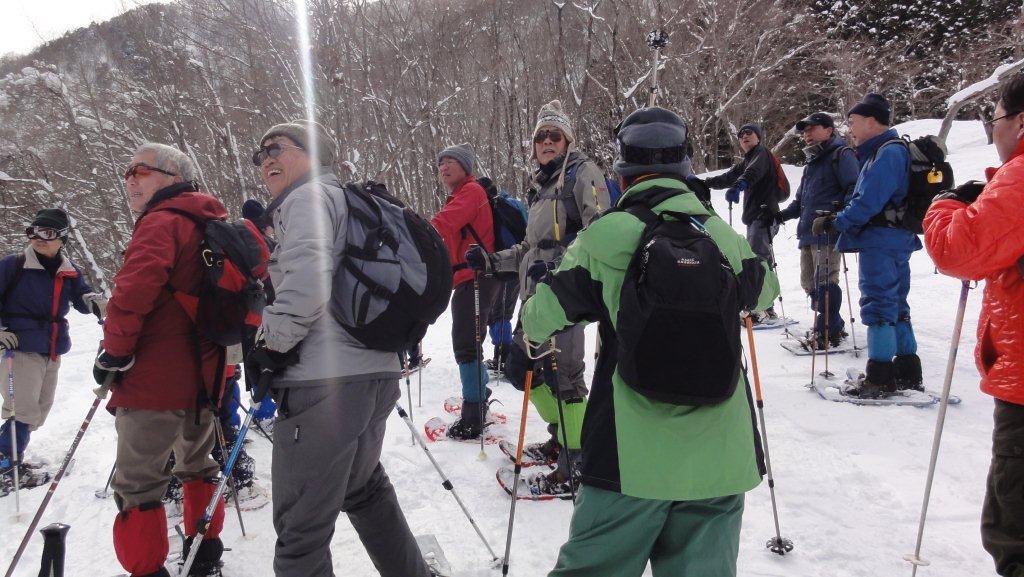 2月22日から白馬岩岳へ山仲間21人の代人数でスノーシュートレッキングをして来ました。8時ちょうど初のあづさ号で松本まで行き大糸線に乗り換えて南神城駅近くにある宿にお昼過ぎ到着です。宿で支度をして早速宿の五種純の案内でかみしろスキー場あたりを散策することにしました。