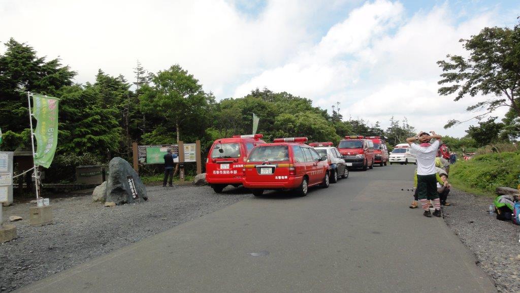 そこでは足を滑らせ大怪我をした人を救助するレスキュー隊でいっぱいでした。ガスが濃くヘリが呼べなくて大変だったようですが帰りにヘリの音がしたので無事救出されたようです。駐車場(6台くらい泊まれる場所が2箇所ありました。路上駐車は禁止で監視員もいるので総長に来ないといけないことを確認しふもとの宿へと向かいました。さて天候は回復するのだろうかしんぱいです。・・・明日へ続く。