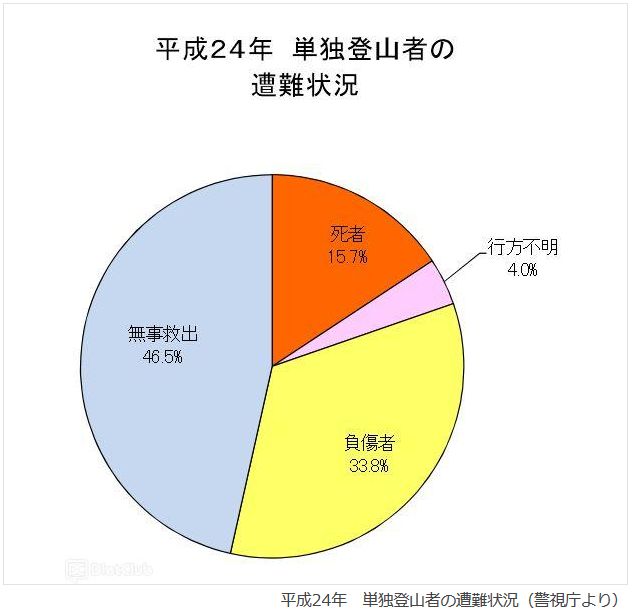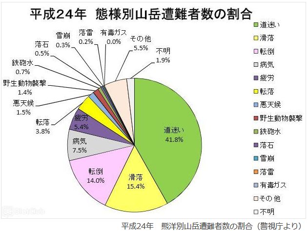 平成24年 熊洋別山岳遭難者数の割合(警視庁より)
