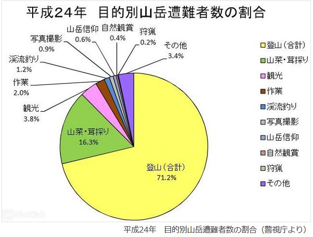 平成24年 目的別山岳遭難者数の割合(警視庁より)