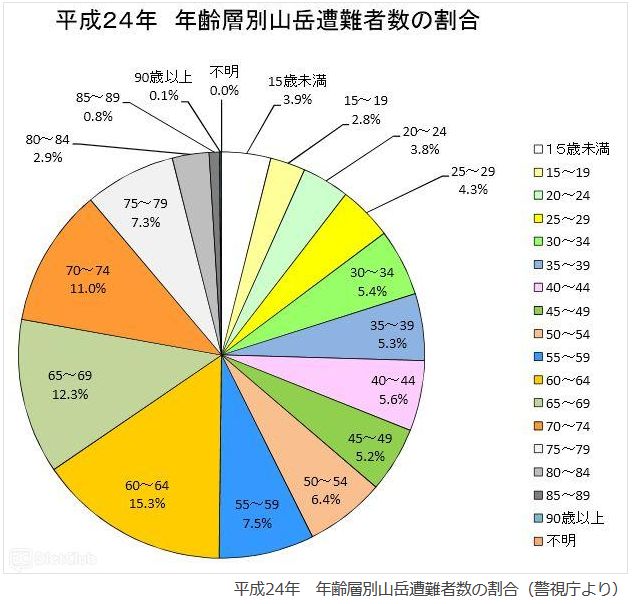 平成24年 年齢層別山岳遭難者数の割合(警視庁より)