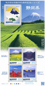 また、ふるさと切手「地方自治法施行六十周年記念シリーズ静岡県」のデザイン=写真=が発表され横山大観の「群青富士」を基にした富士山など5種類の80円切手を発行する。発行は10月15日で一シート400円で販売するそうだがなんでもかんでも富士山ブームですね。