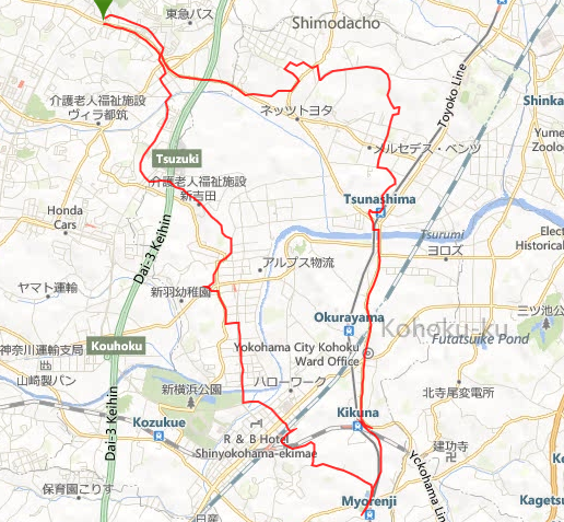 私が設定し走ったコースをGPSで記録した。距離は24.37kmでした。