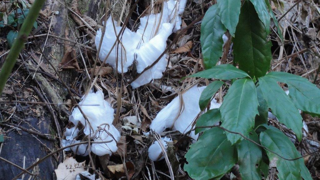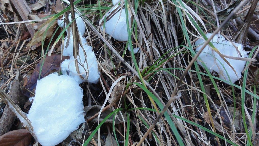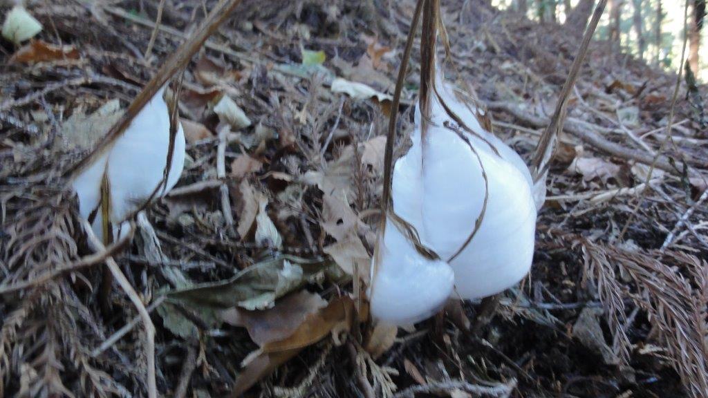 そして下山です。下山は作業道でも毎年霜柱がたくさん咲く場所通過して降りることにしました。