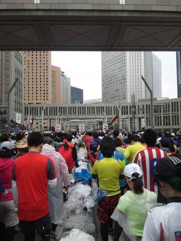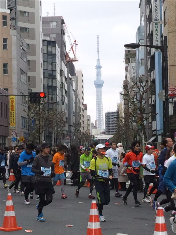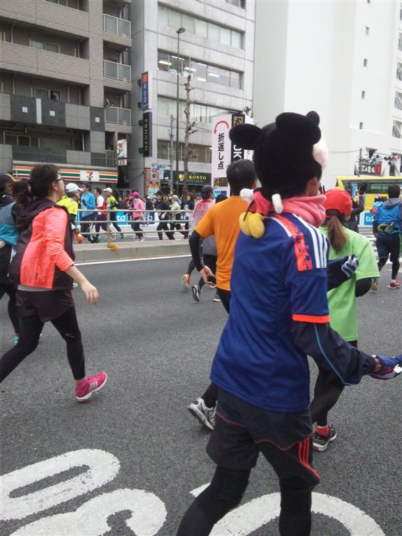 2014年2月23日朝から曇りで寒く時折小雪もちらつく中東京マラソン走りました。