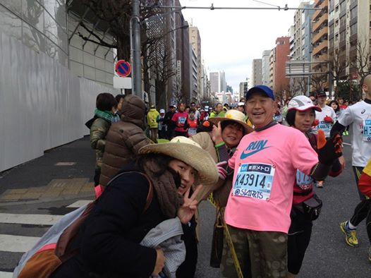 折り返して18Km付近で孫や女房たちの応援が待っていました。パワーをたくさんもらって走れます。