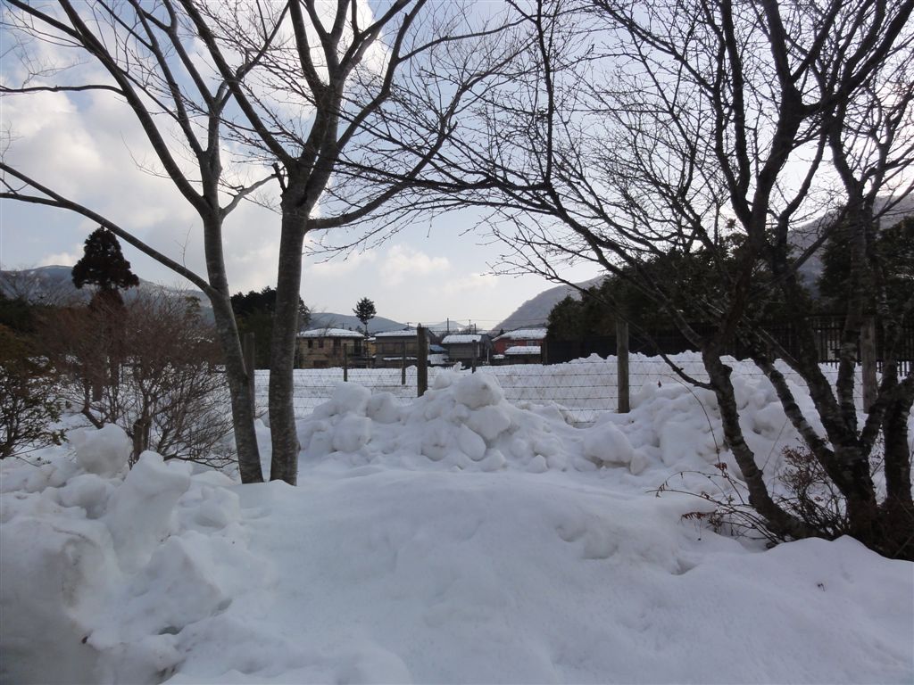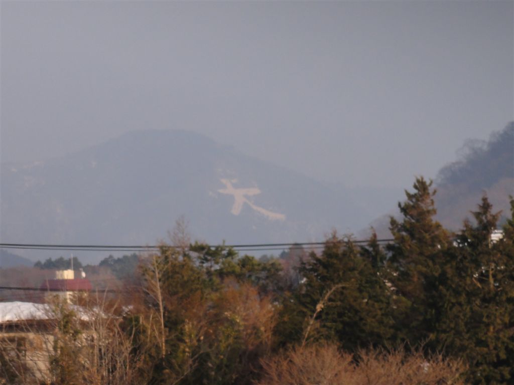 節減の向こうに大文字焼きが・・・いえいえ雪で浮き上がった大文字が見えました。