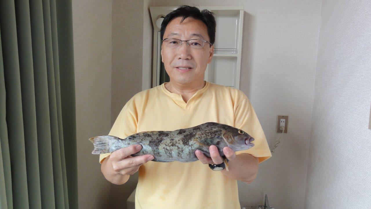 朝起きたら写真を撮ってくれと私の部屋に魚を抱えて着ました。釣り好きのK氏が早起きしてアイナメ約40cmの大物を釣ってきました。さてどんな料理になるでしょう。