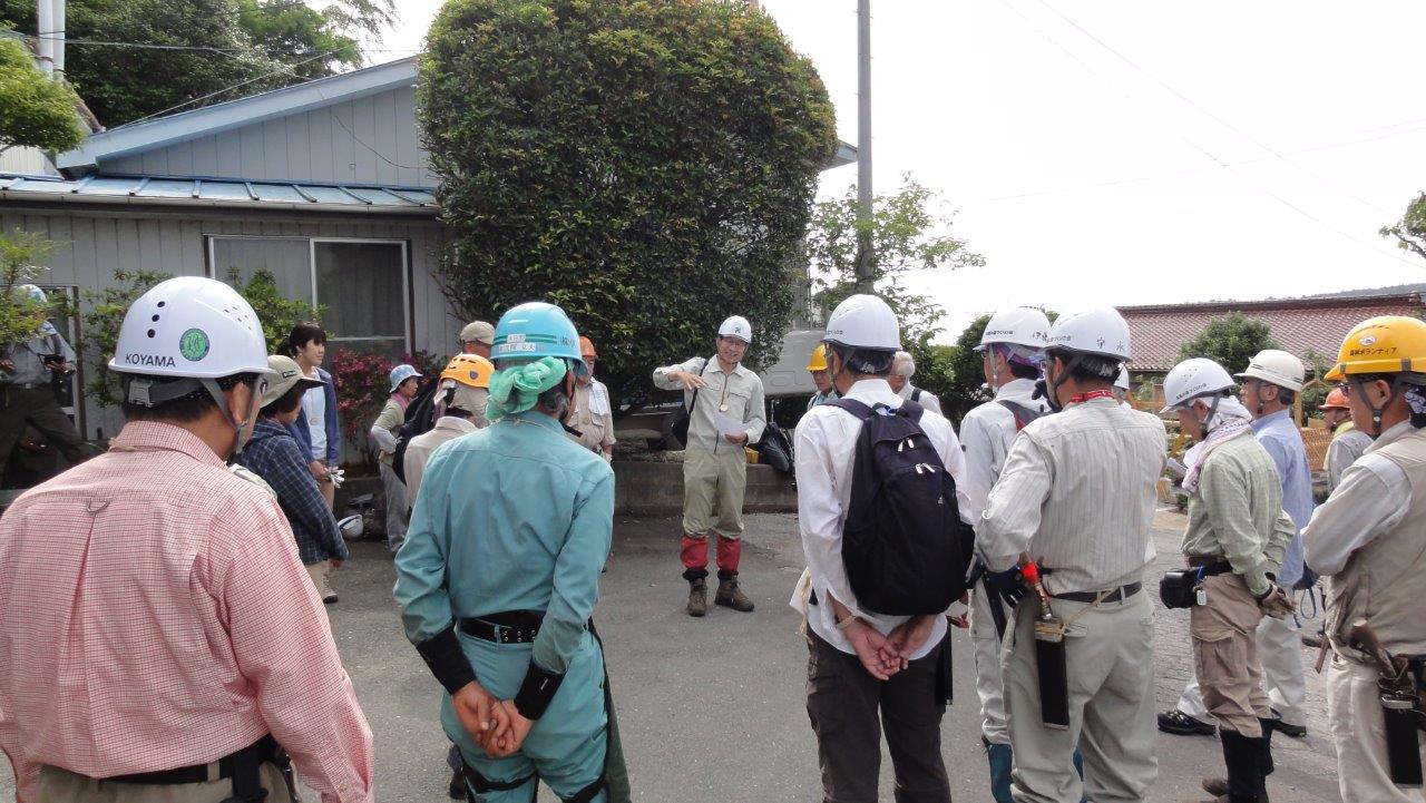 朝食を終え、宿の前で作業現場と班分けを行い注意事項を聞き、準備体操をして各持ち場へ出かけます。