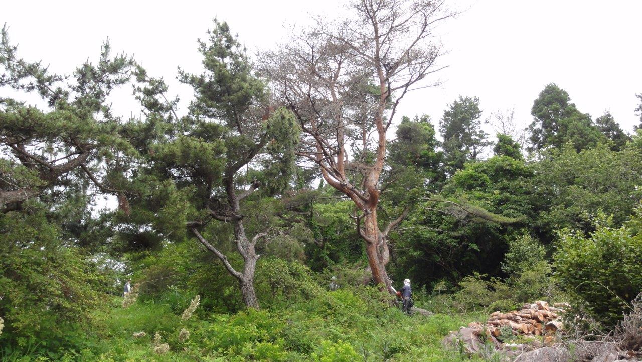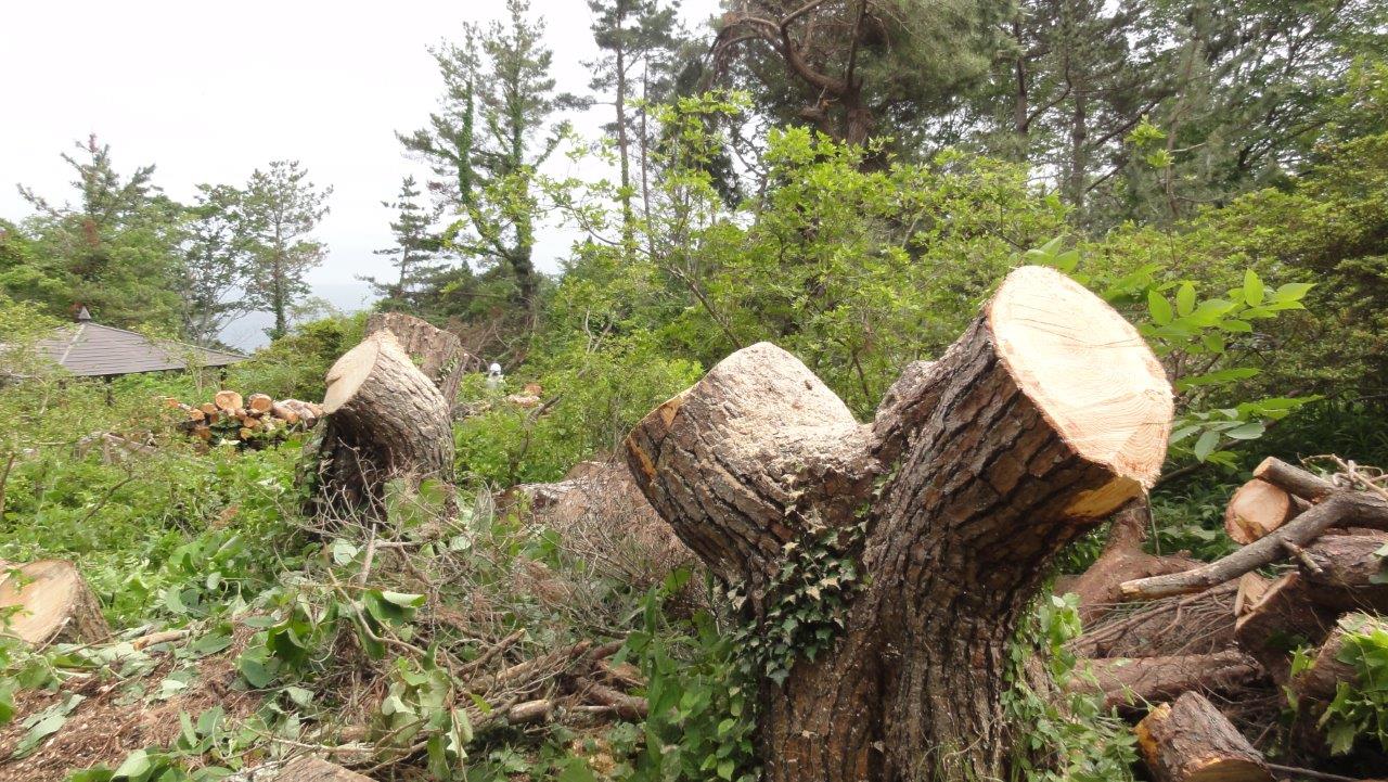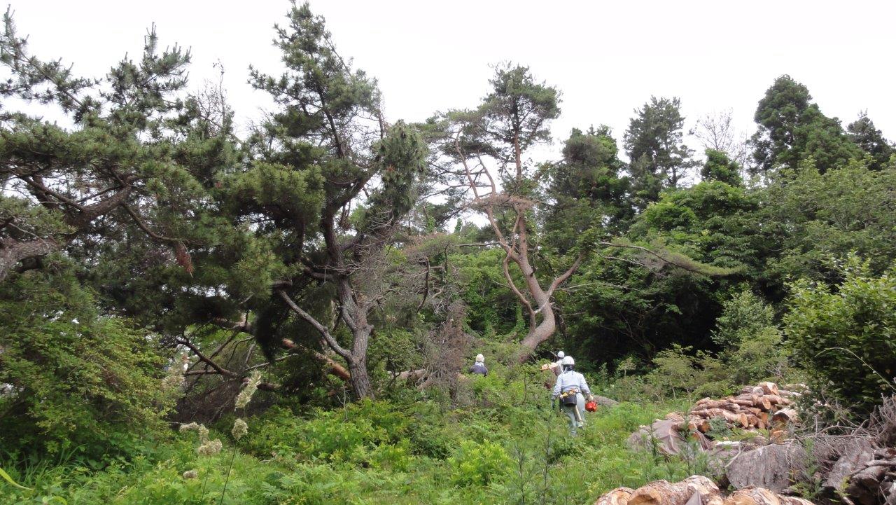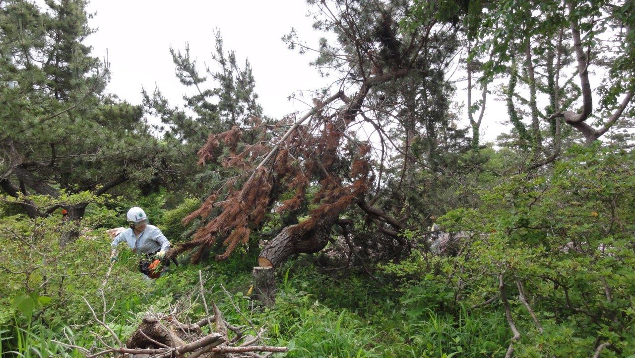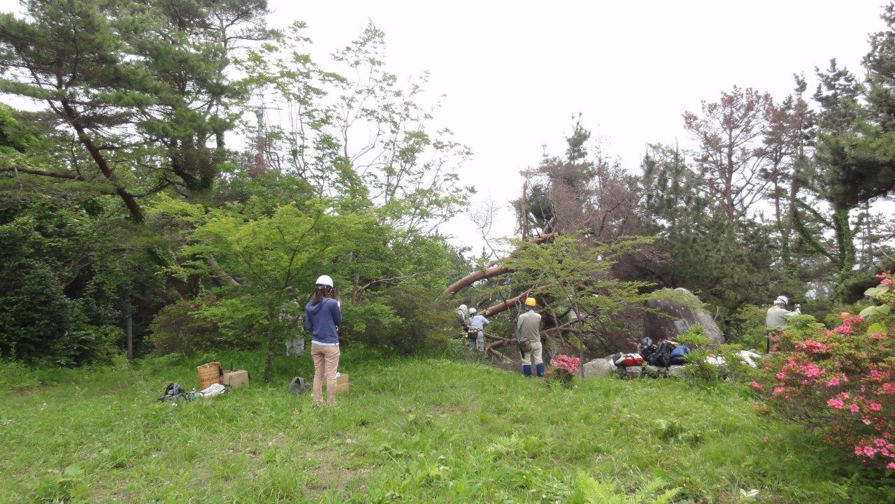 日本山岳会高尾の森づくりの会(こちらのHP)では毎年6月と11月に宮城県気仙沼市の大島へ観光復興のお手伝いとしてボランティアで作業に行っている。