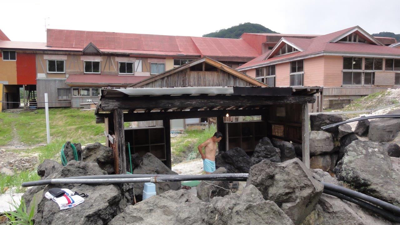 昨年登ろうと出かけたが雨続きで登らなかったのでそのリベンジである。前回は雨女が同行してためだったが今回は晴れ男4人組で出かけた。(昨年の国見温泉から秋田駒への日記はこちら)今回は天気は上々のようだ。国見温泉では自炊棟にとまるので途中のスーパーで食材を2日分購入し手行った。国見温泉・石塚旅館に到着し先ずは露天風呂で運転の疲れを癒しました。