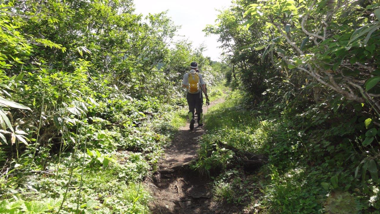 シラネアオイの群生地に出るとムーミン谷の木道はおしまいです。ここから急坂が30分ほど登ると女目岳(おなめだけ、1637m)、男岳(おだけ、1623m)分岐の鞍部へでますが今日は長くなりましたのでここから先は明日に続く・・・・
