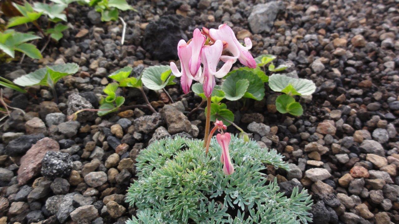 秋田駒ケ岳の植物を代表するものにコマクサの大群落がありますが、大焼砂という特異な焼砂地帯を独占して可憐な花が咲き始めていました。もう少ししたらこの群生がいっせいに咲き出すでしょう。高山植物の女王と呼ぶにふさわしいですね。