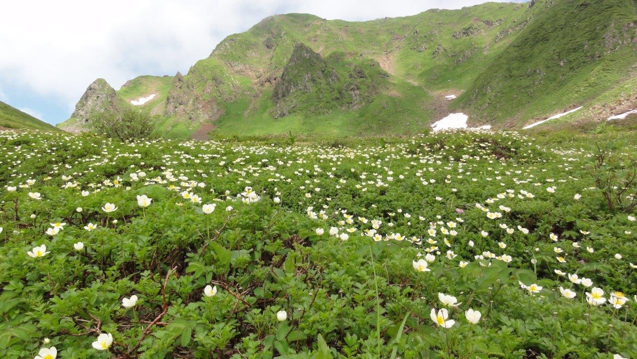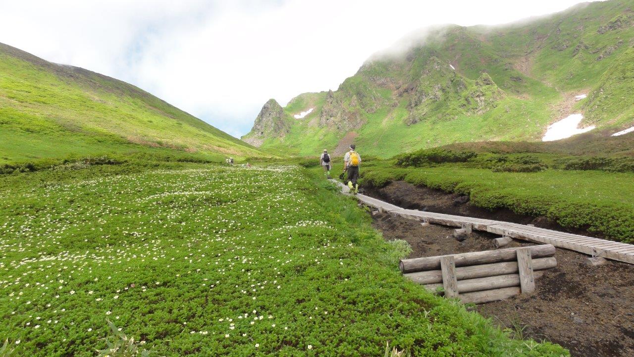 ムーミン谷に下りていくとチングルマ、ヒナザクラが迎えてくれます。