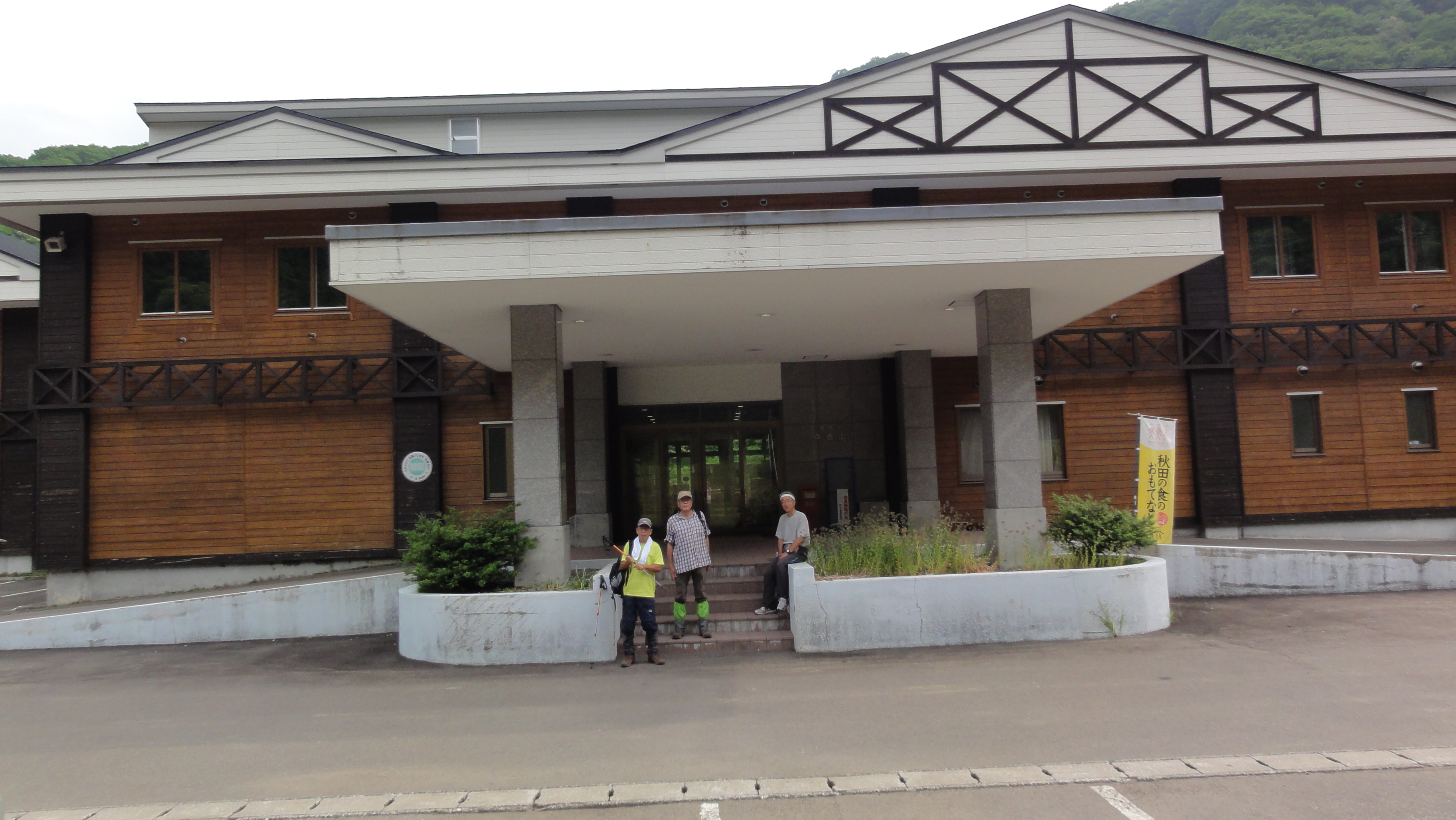 7月4日(金)雲はちょっと多いようだが晴れている。国民宿舎森吉山荘の食事は7:00からなのでc登山にはちょっと遅いスタートになる。朝食を頂き、宿を出発です。
