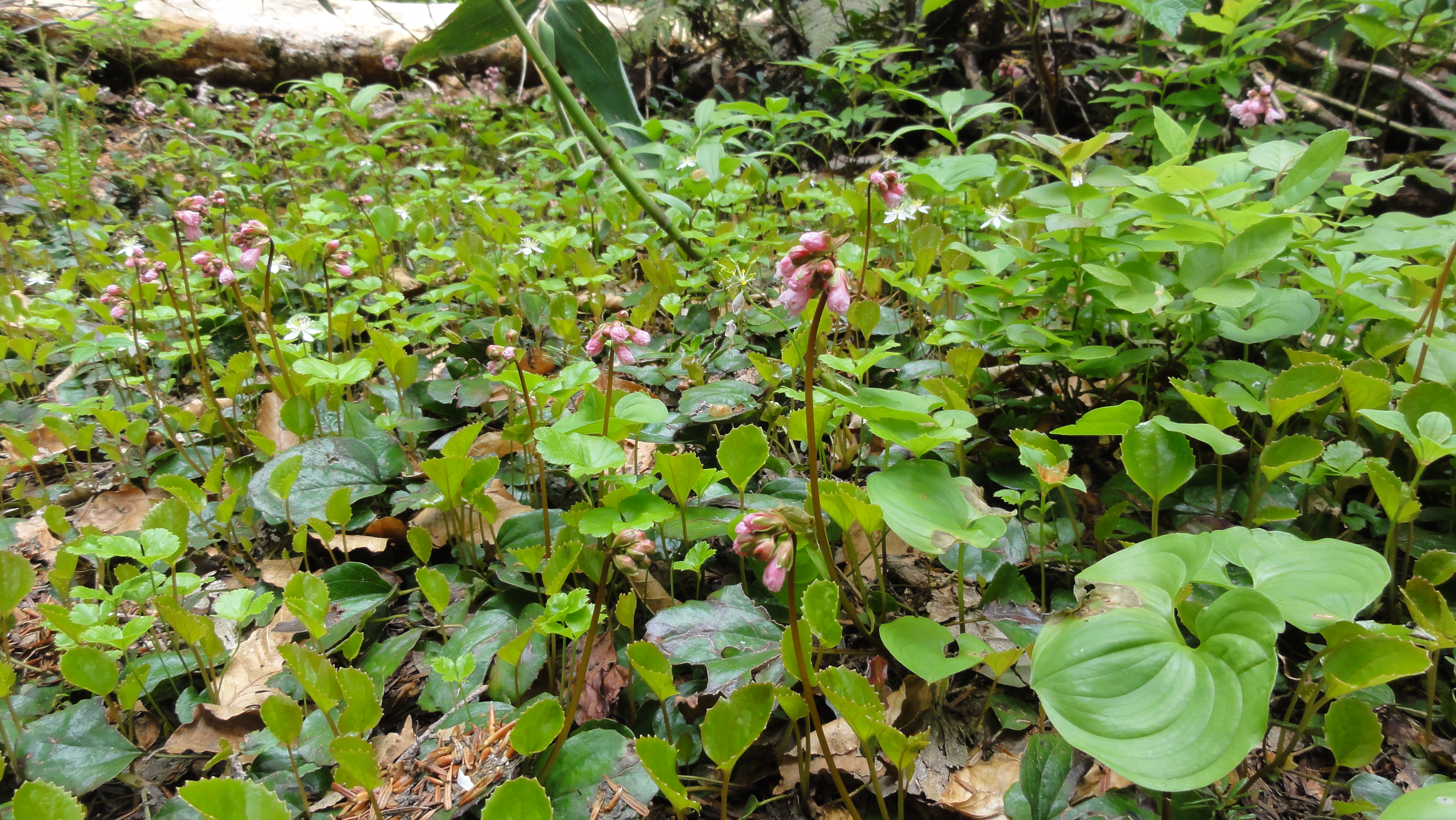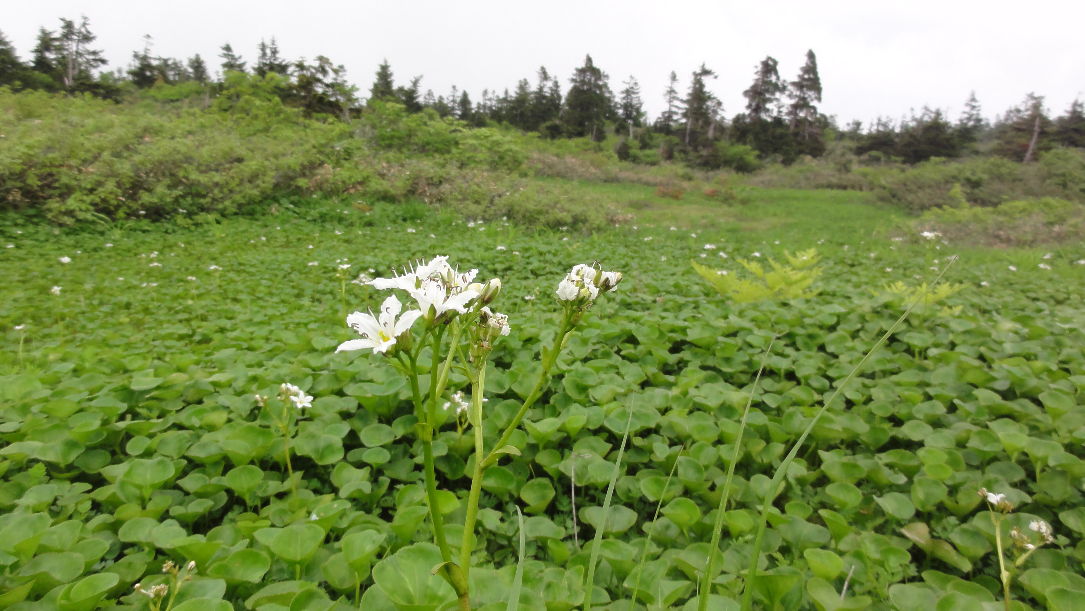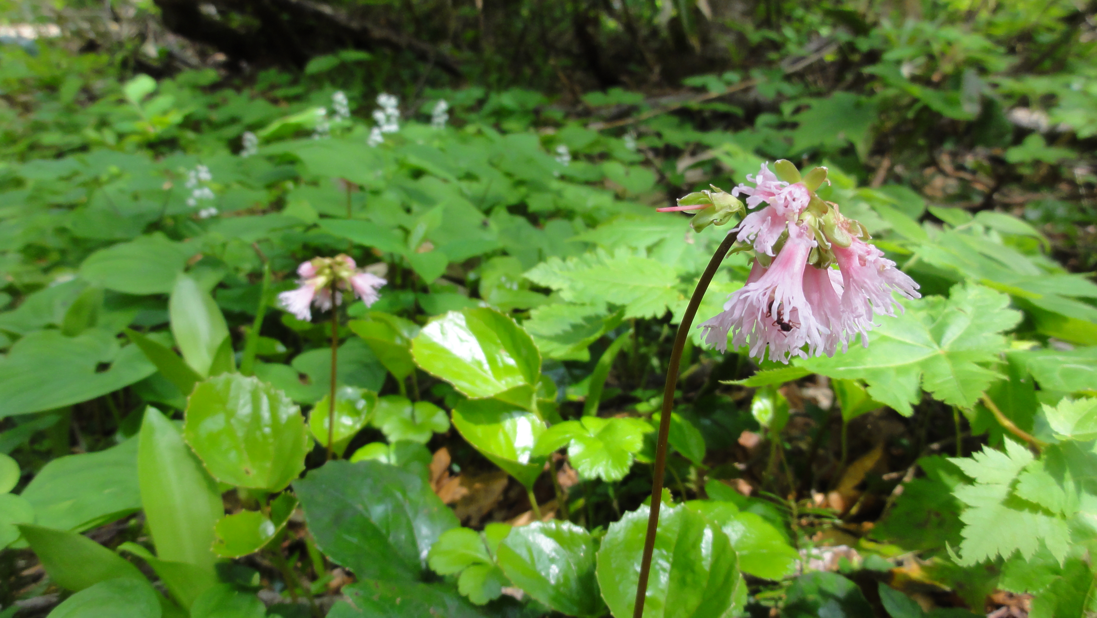 8:05登山スタートです。登山開始からいきなりマイズルソウの群生が登山道両脇に続いています。ギンリュウソウも延々と登山道脇に咲いています。