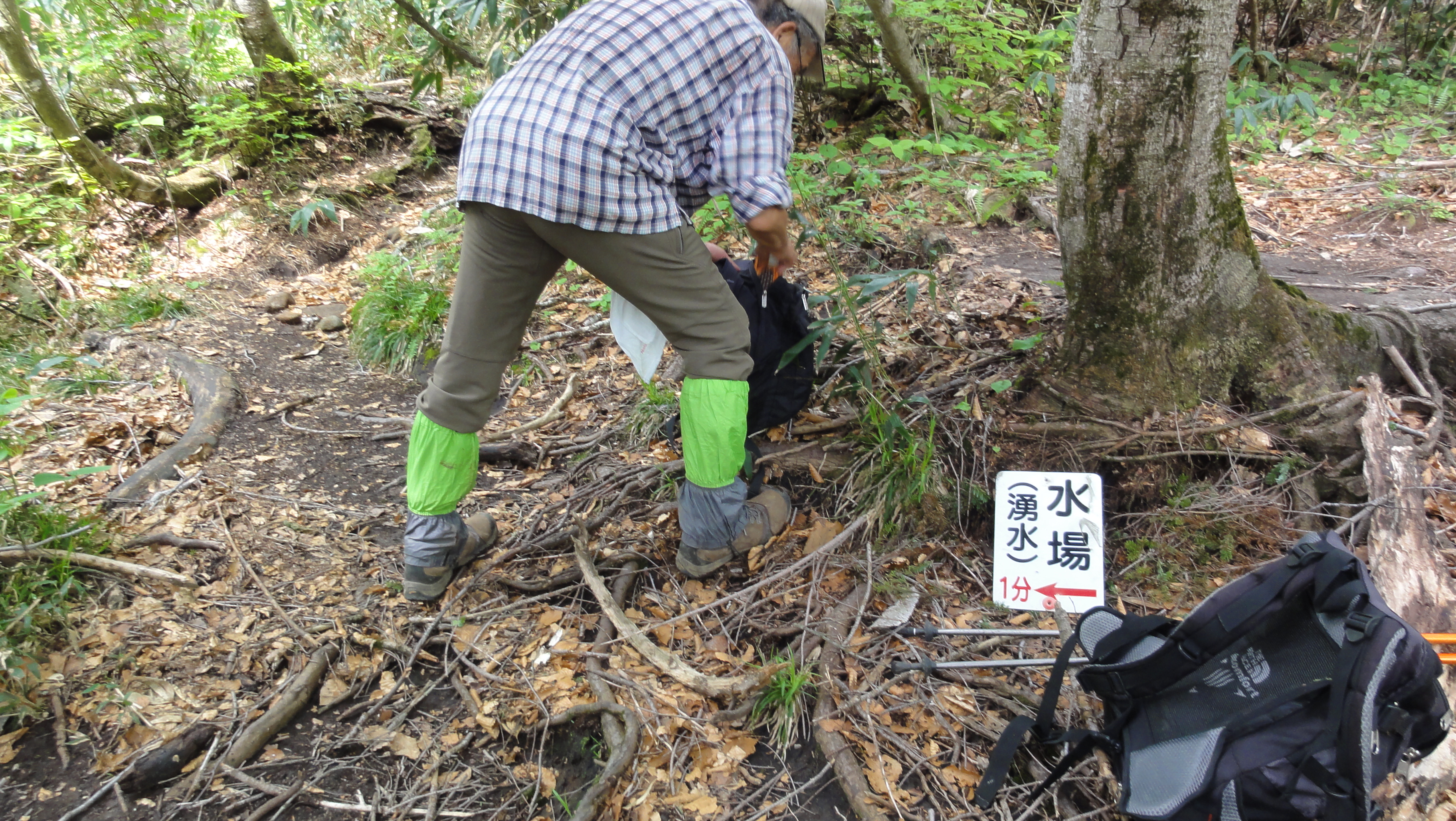 歩いていて花を見ながらの登山はまったく疲れませんね。水場は登山道から1分です。こんこんと湧き出るとっても冷たい湧き水です。美味しいお水で気分爽快!みずばしょうもまだ咲いていました。