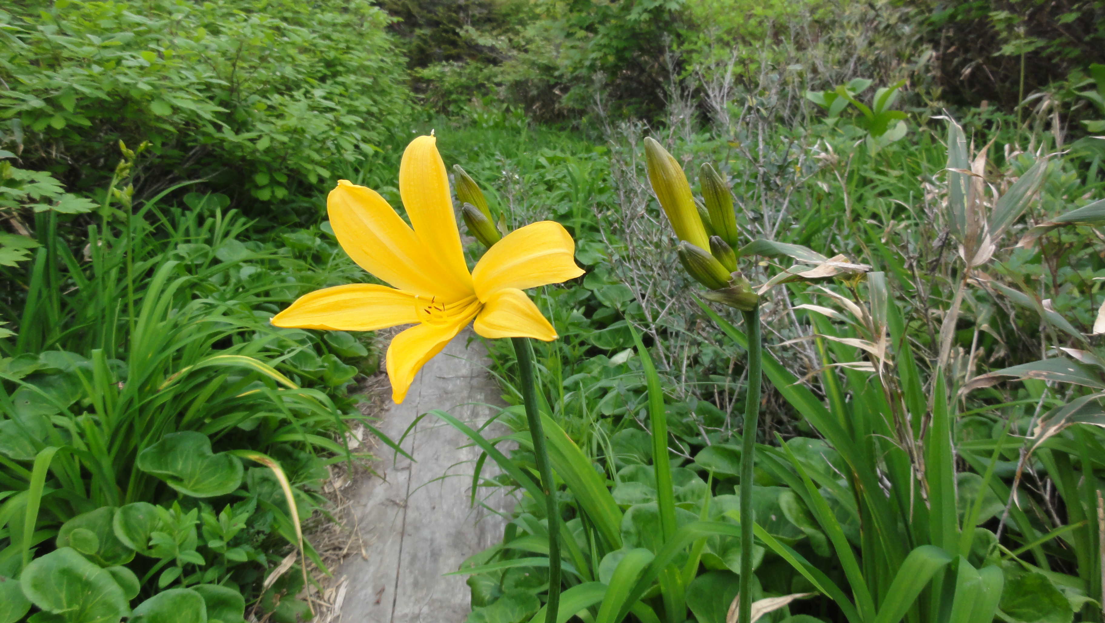 ヒバクラ分岐にでて来ました。ニッコウキスゲが一輪迎えてくれます。あと10日もすれば一面満開になるでしょう。