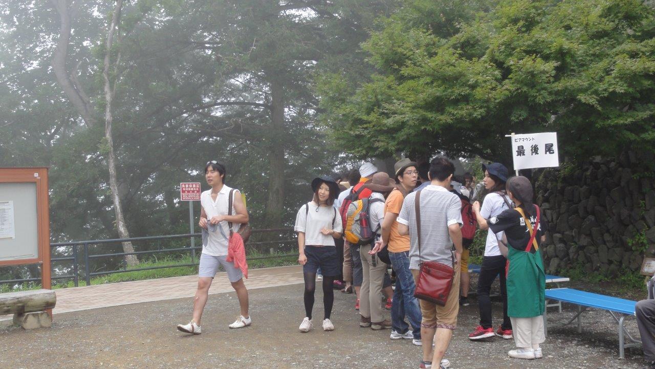 今日の目的地の高尾山ビアーガーデンは大勢の人が並んでいました。