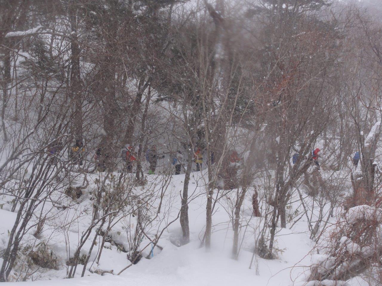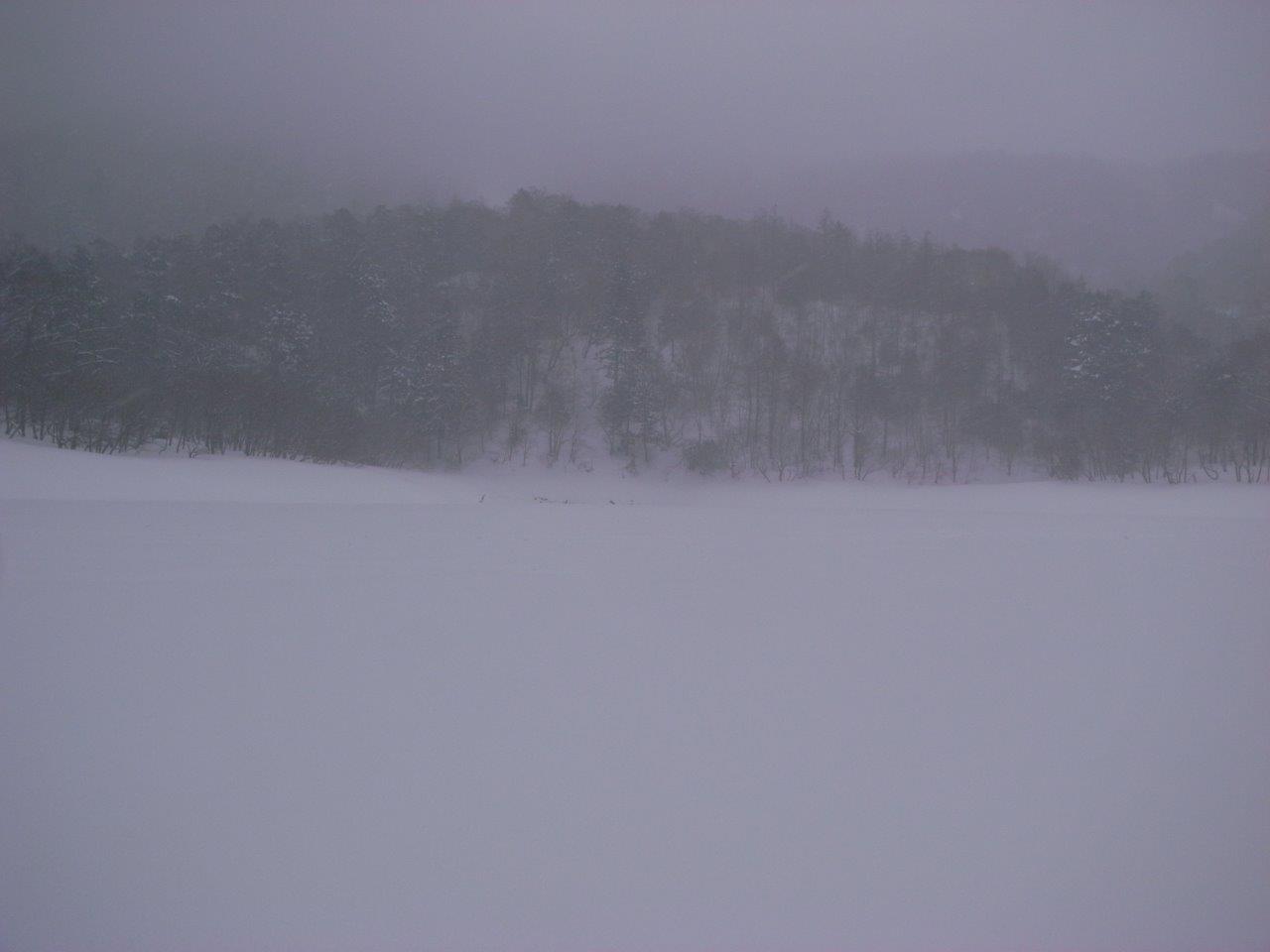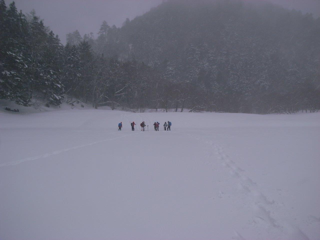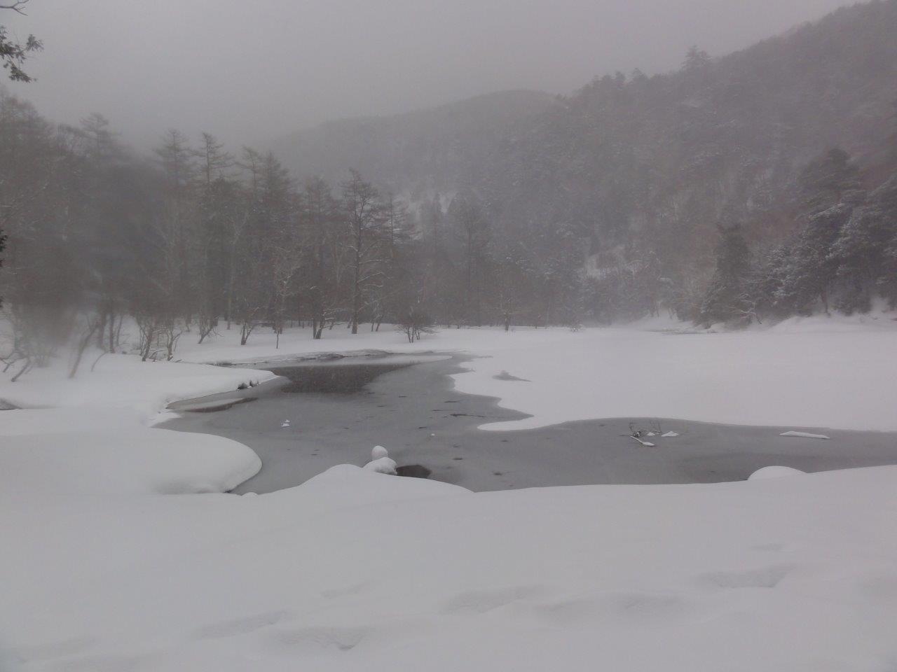 蓼ノ湖に到着しましたが雪はますます本降りとなり引き返す案が出ました。