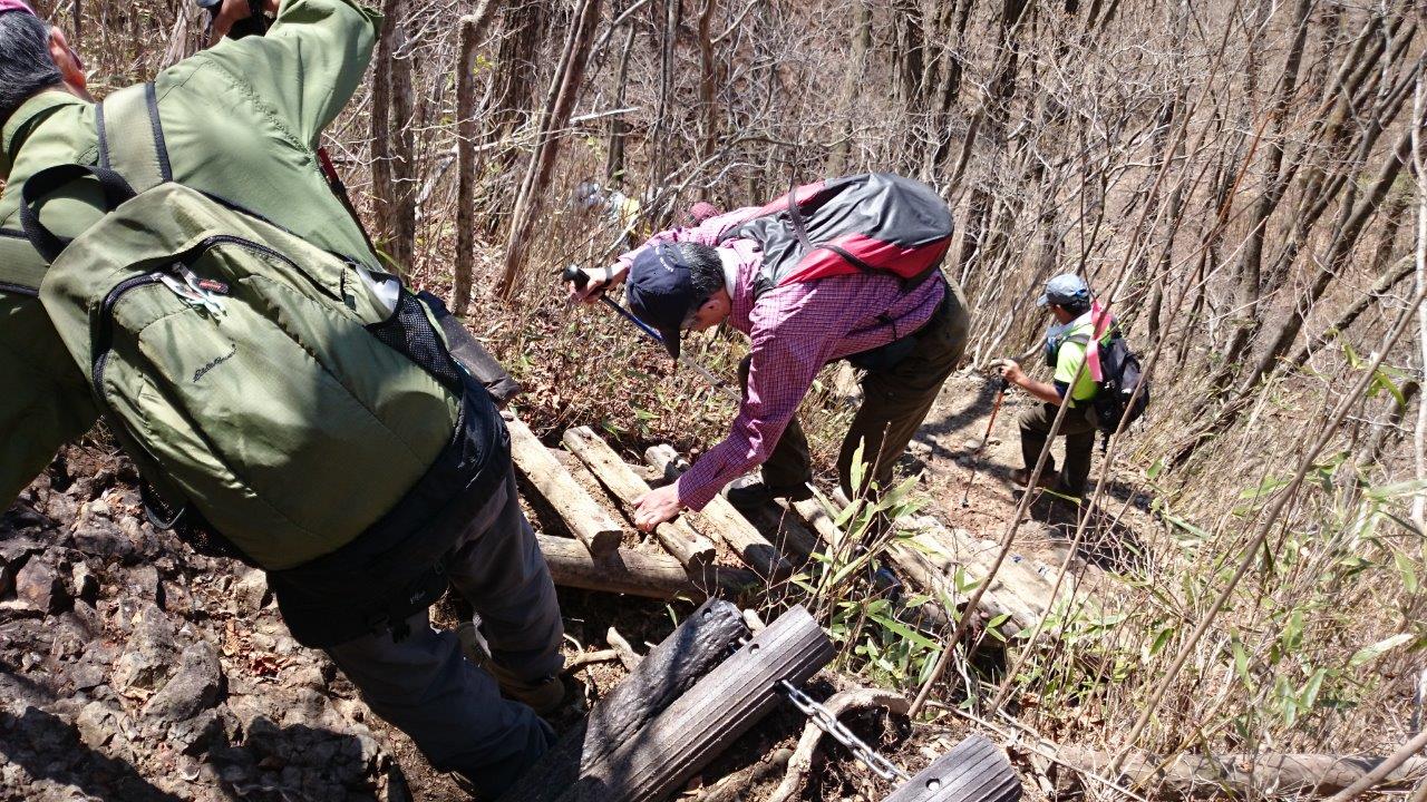 荒船山登山口 駐車場奥の登山口から、すぐにアップダウンがあります。