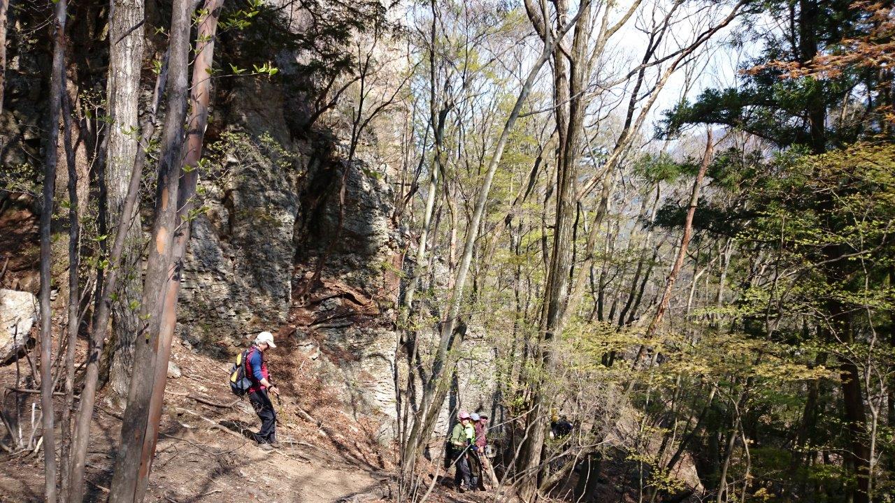 荒船山は、その名の通り、巨大な船を思わせる山容でアップダウンが多く、せっかく登ったと思ったらまた少し下りる、ということが多いですが45分ほど登ると、巨大な岩があります。小休止をして先に進みます。