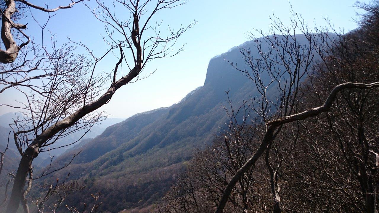 下山後見晴らし良い場所から断崖絶壁のある艫岩を見てみました。