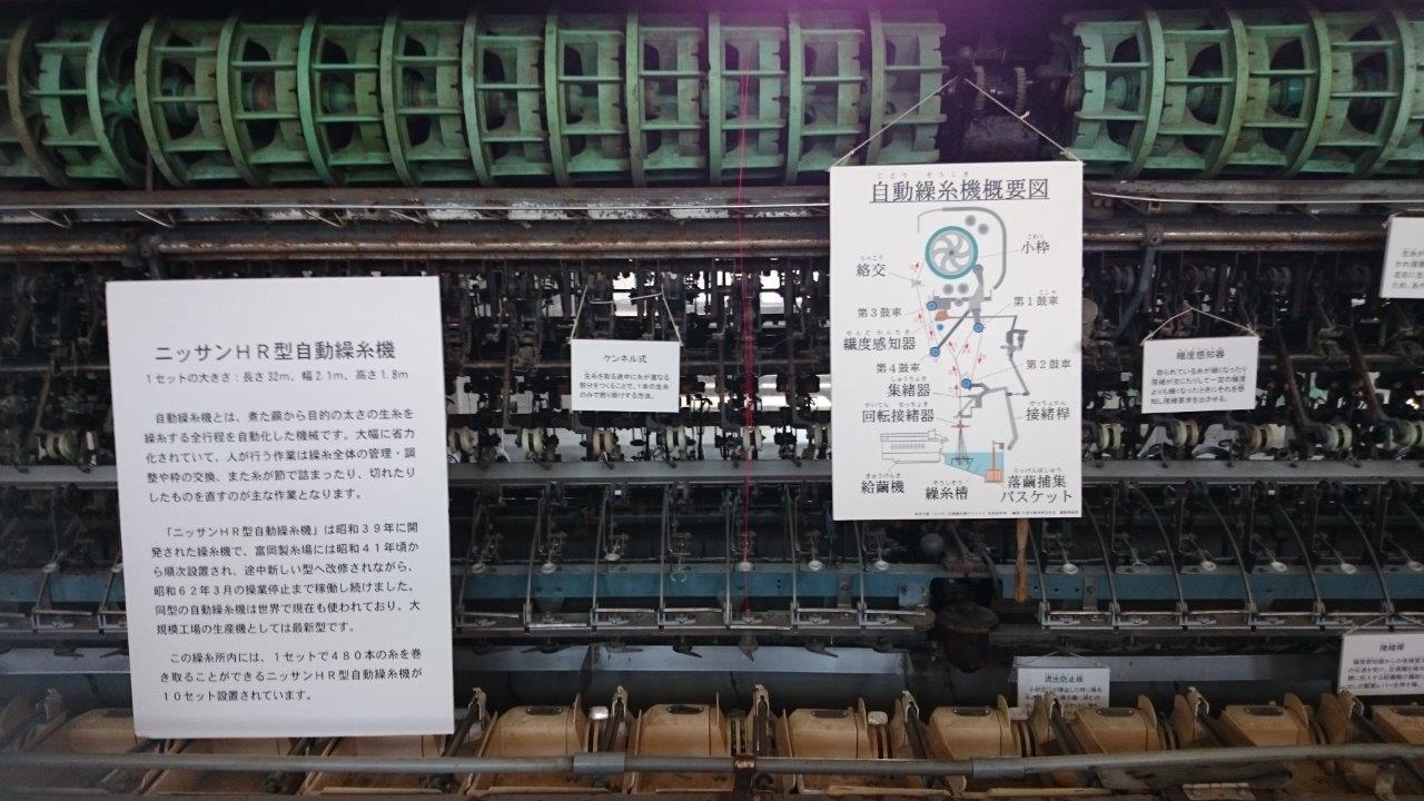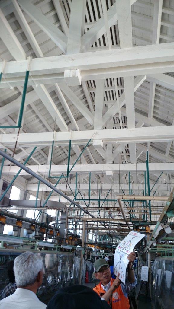 柱のない広い建物の屋根には工夫がありますね。梁に均等に屋根からの重量を分散される構造になっていました。操糸機も素晴らしい技術で効率の良い作業ができていたのが良くわかりました。世界を席巻した絹糸はここから始まったのですね。