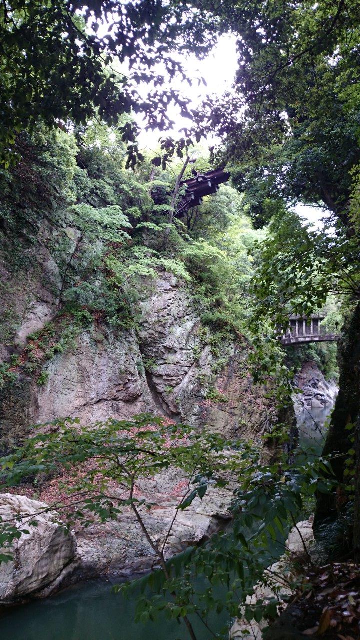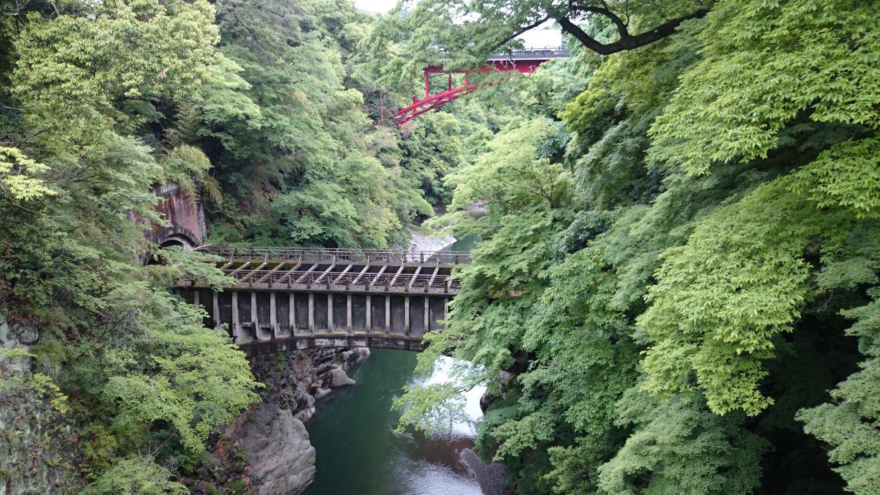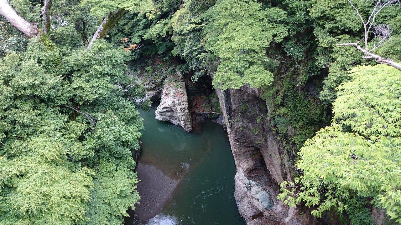 橋の上からは桂川の渓谷が美しいです。新緑の今もいいですが秋は紅葉が綺麗でしょうね。