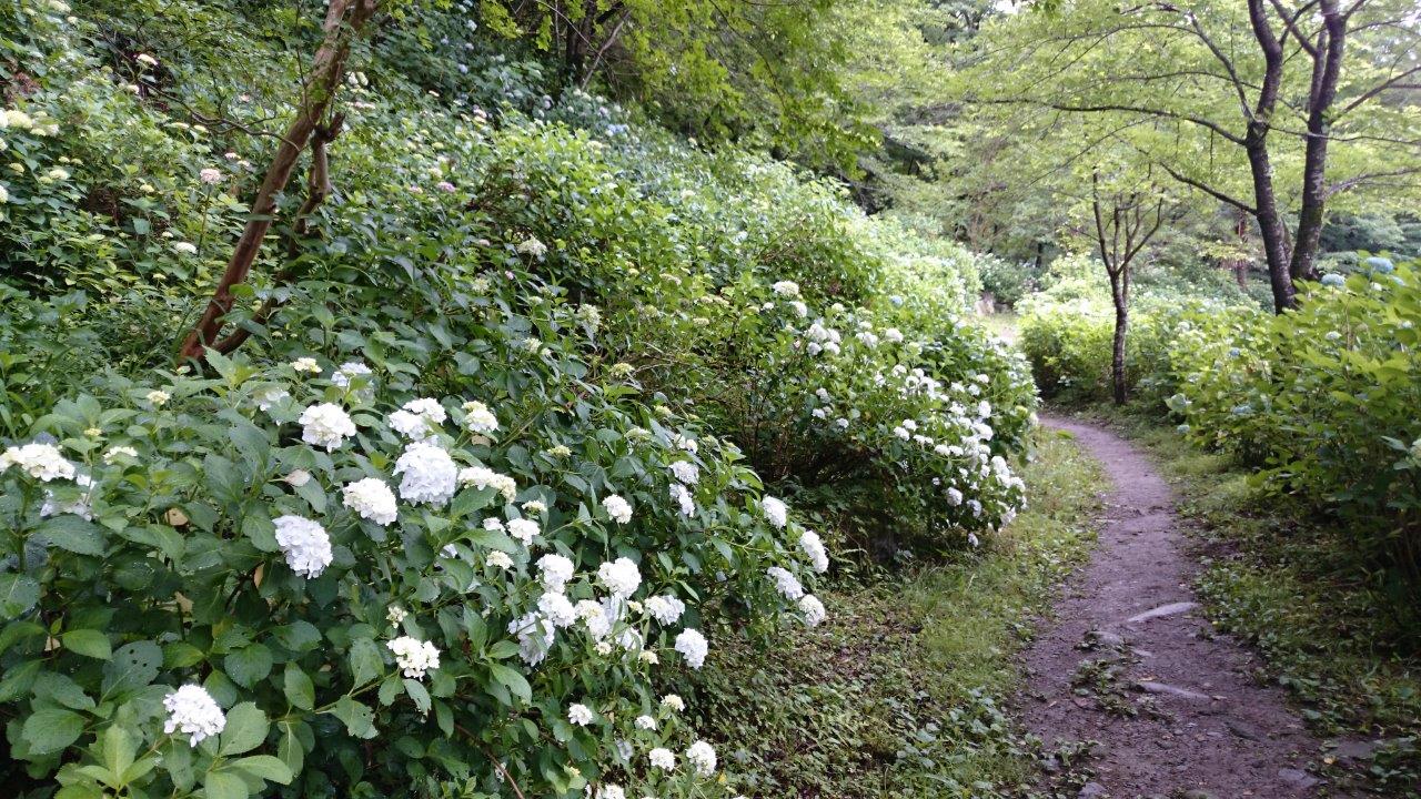 そして遊歩道のあじさい6月には3000株が咲き誇るようですがまだちょっと早かったですね。
