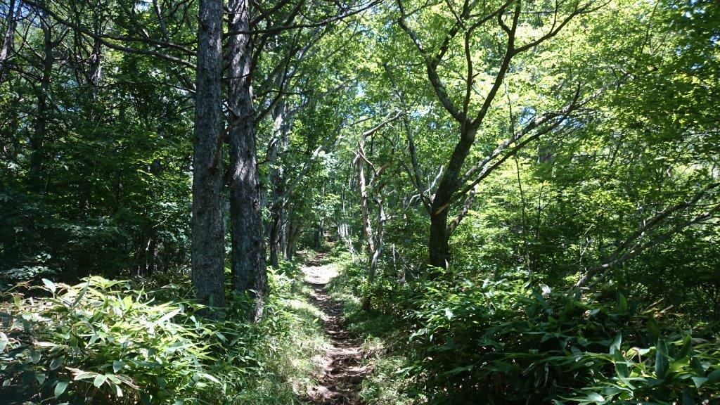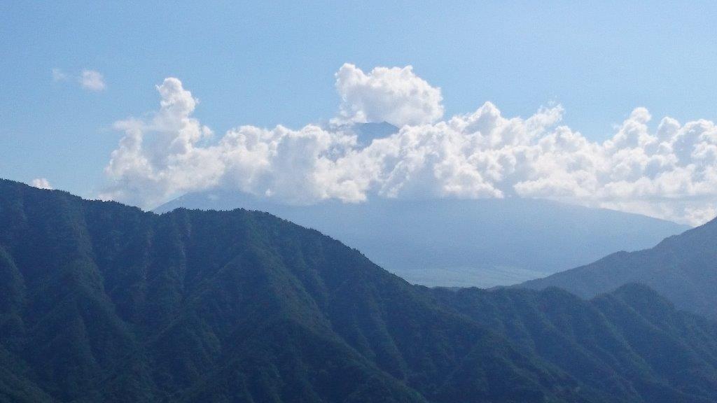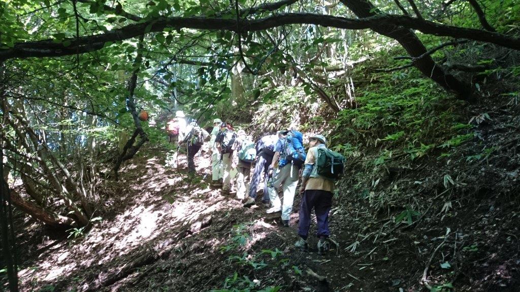 尾根道はみとうしは悪いですが緑のトンネルで風も良く通り気持ちが良く、下界の猛暑から逃れられました。そして山頂で昼食をいただきました。