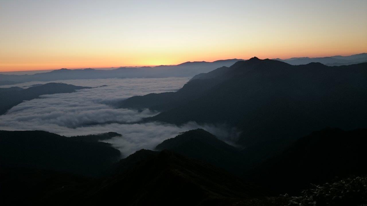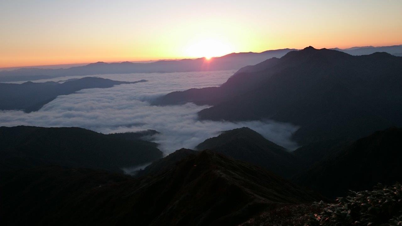 5:00頃目がさめると外が少し明るさがあるのでヤッケを取り出してきて外へと出た。東の空が明るくなってきていました。そしてご来光です。雲海が見事です。これを見たかったのです。