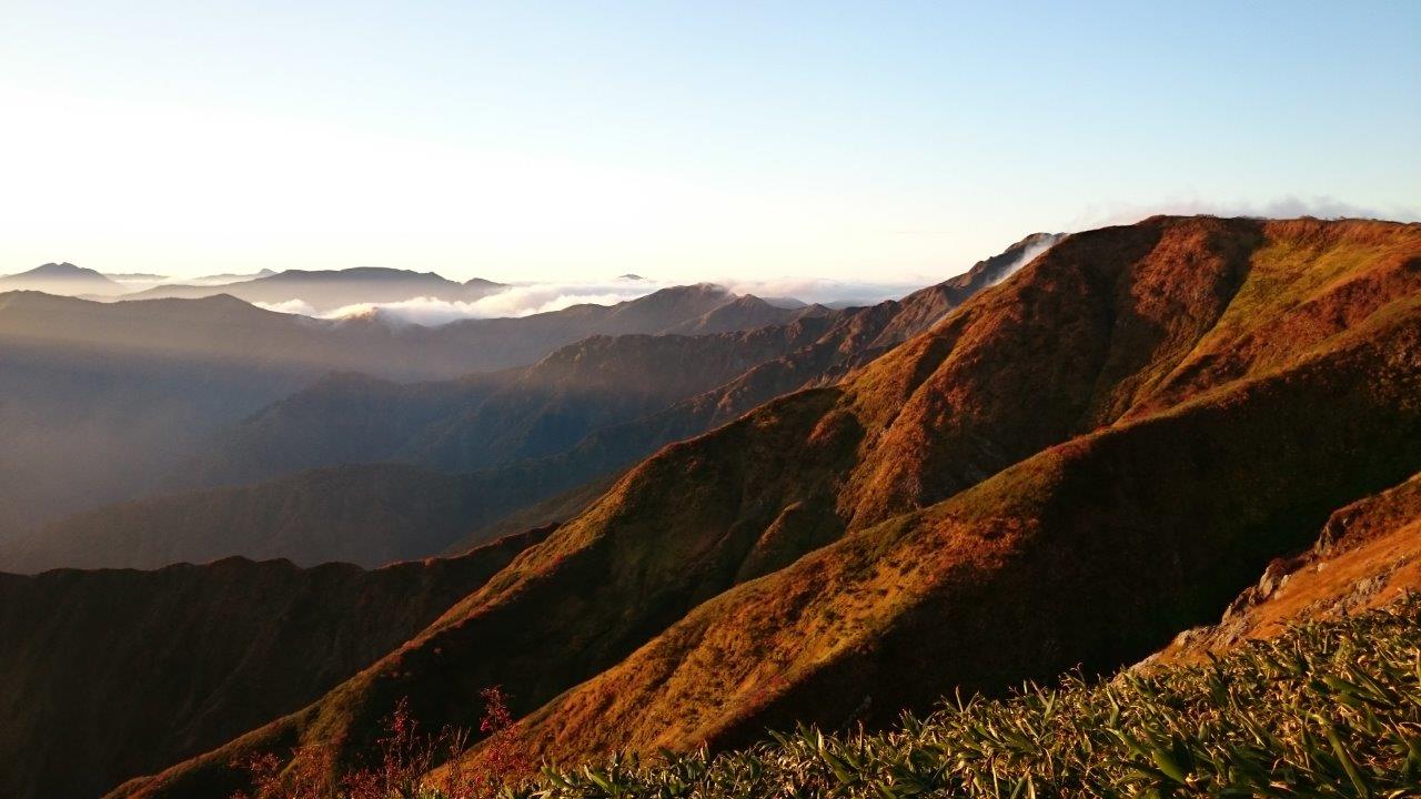 そろそろ雲海も消えだす頃です。最高の天気になって駒の小屋に1泊した甲斐がありました。